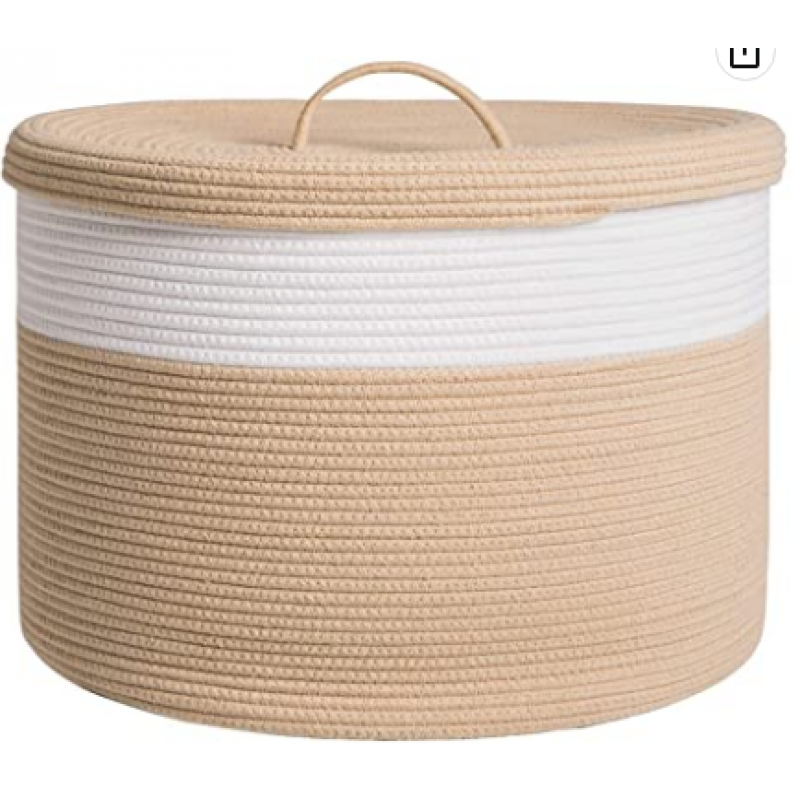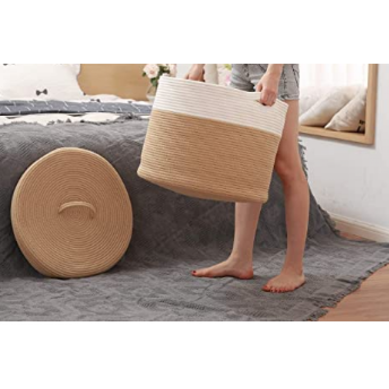 - ✓ NATURAL MATERIAL HANDCRAFTED STORAGE BASKET: 100% cotton rope, soft material without any chemicals, safe and healthy, environmental friendly, firm and sturdy. Off-white natural cotton on top and Beige tone at the Middle/Bottom/Lid.